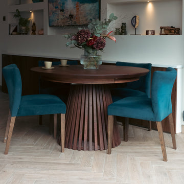 Vivien laajennettava pyöreä ruokapöytä suklaatammilla