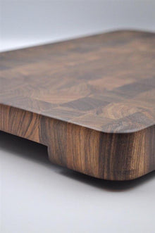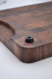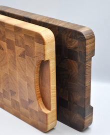 Handmade in the UK, this chopping board features a mix of hand-selected, contrasting walnut and maple woods.