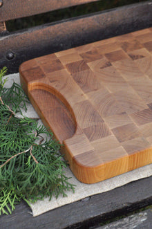 the Calum chopping board is pieced together from contrasting panels of hand-selected, FSC-certified timber using traditional artisanal techniques.