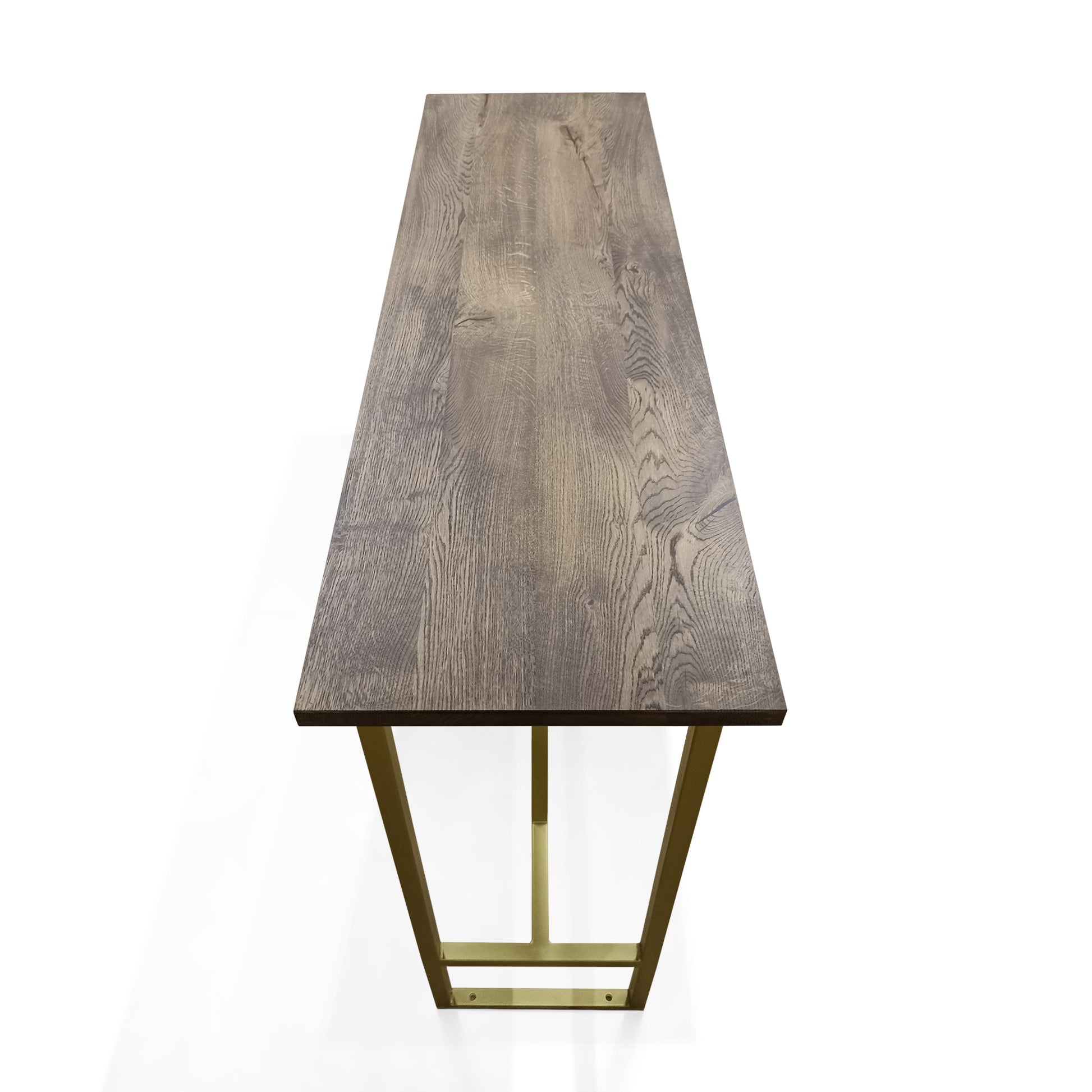 The Bar Table combines elegance and functionality with its ultra-durable oak top and a sturdy A-shaped Steel legs pedestal base for a sleek, space-saving design. The table is customisable to the nearest cm in sizes from 100 to 350 cm.