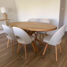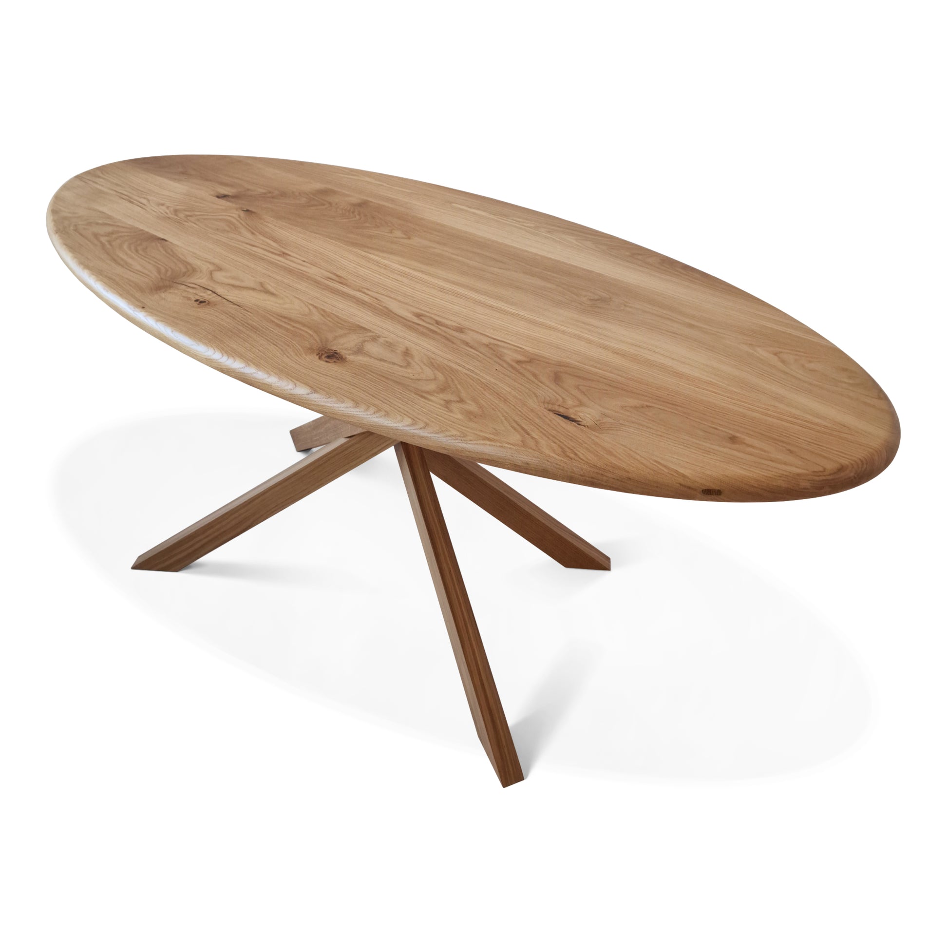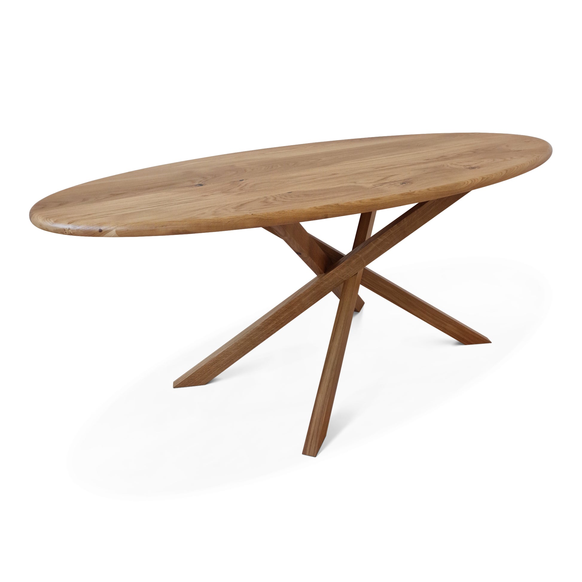 The Gigi Oval Oak Table seamlessly blends sculptural elegance with practical functionality. Crafted from solid oak, its distinctive interlocking legs create a perfect balance of stability and style. The oval tabletop enhances togetherness, making it easy to engage with family and friends and ensuring a natural flow of conversation.