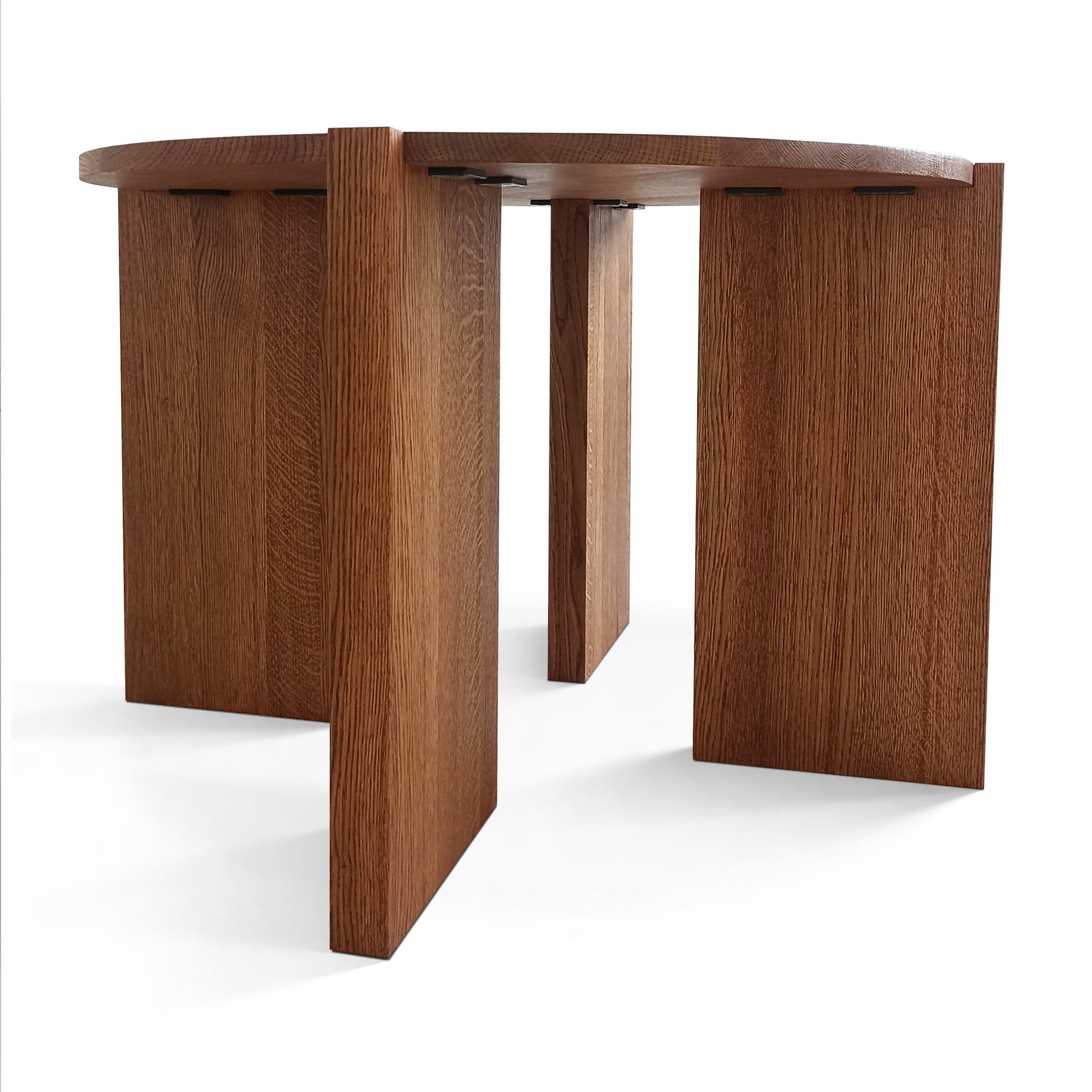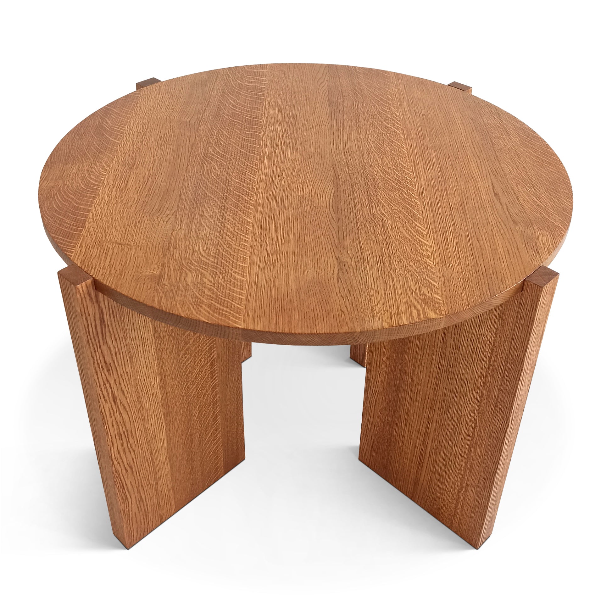 Sohvapöytä, joka on muotoiltu 40 mm: n paksuista kiinteistä tammilevyistä, jotka kaikki ovat FSC-sertifioituja kestävää tuotantoprosessia varten ja kuivattu uunia varten huonekalutuotannon kestävyyden parantamiseksi. Pöydän yläosaa käsitellään Rubio Monocoat-kaksiosaisella öljyllä parantuneen kulumiskestävyyden ja pitkäikäisyyden saavuttamiseksi.