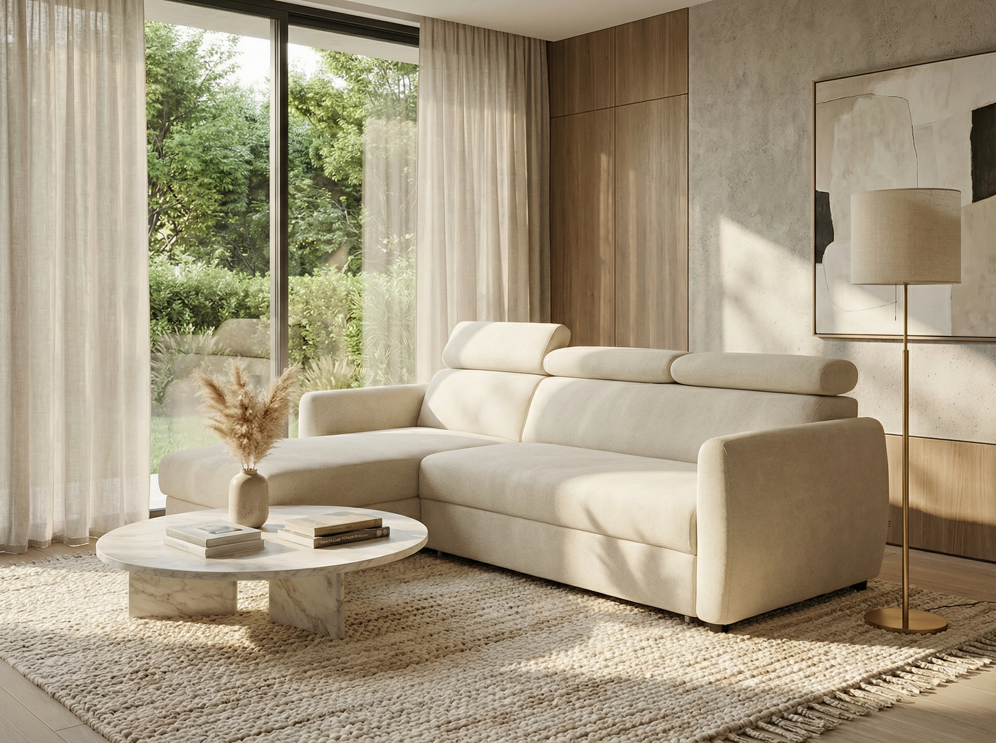 Every sofa can be configured as a sofa bed, providing an effortless transition from stylish seating to a comfortable sleeping space — perfect for guests.