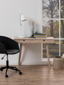 Calvin Desk, vintage-tyylinen toimistokappale, joka on muotoiltu kauniisti kiinteästä tammipuusta. Se tarjoaa runsaasti säilytystilaa, tilavan työpöydän ja kaksi laatikkoa.