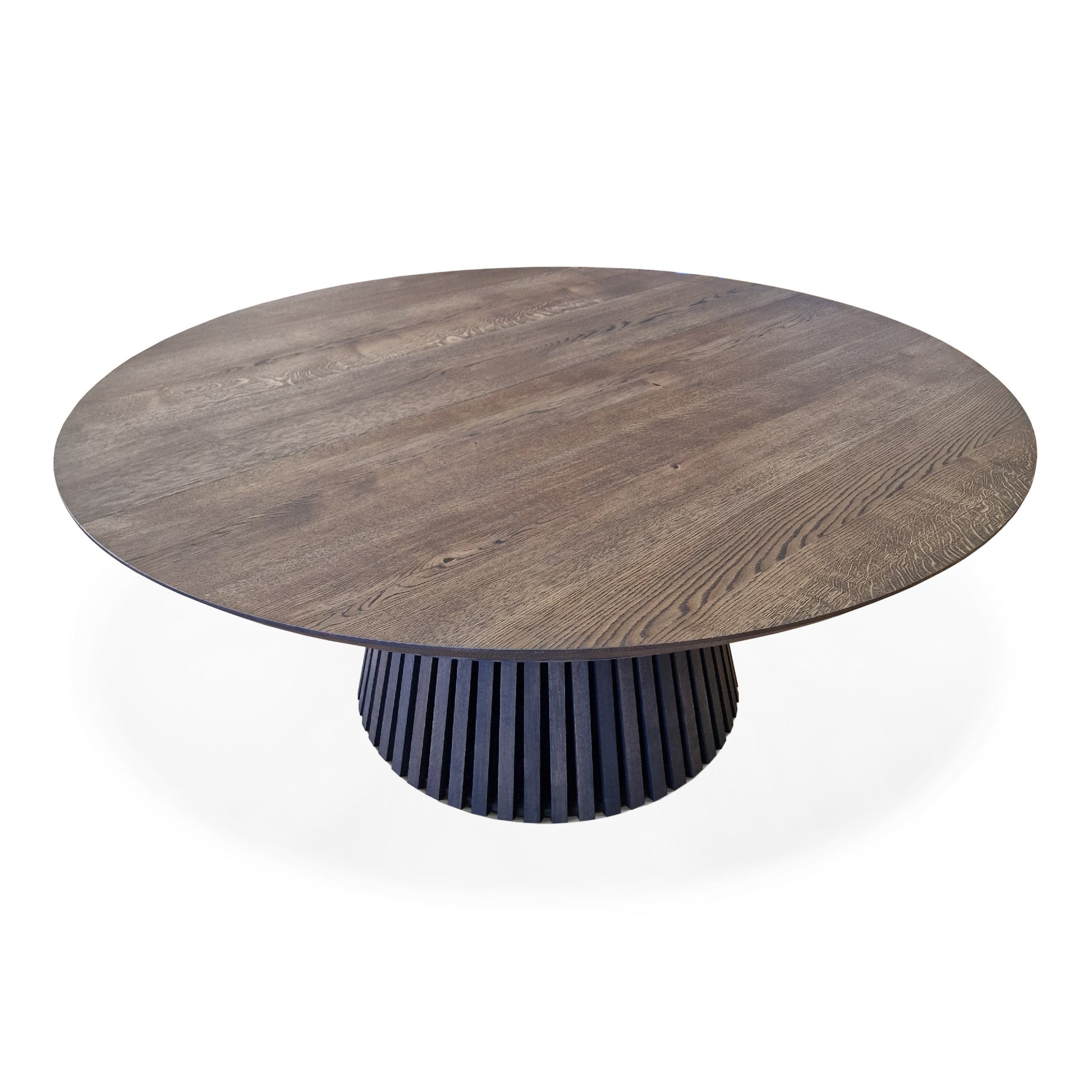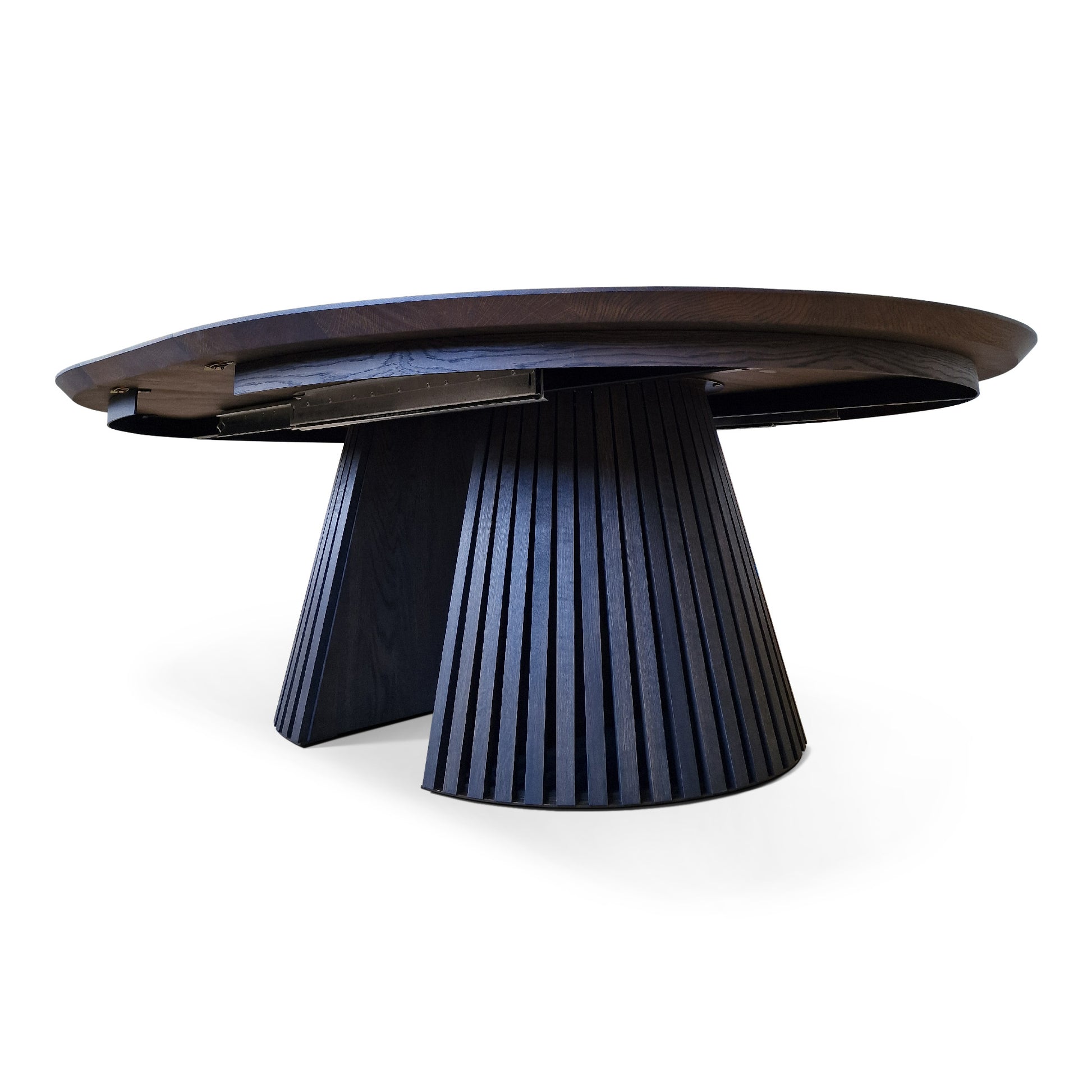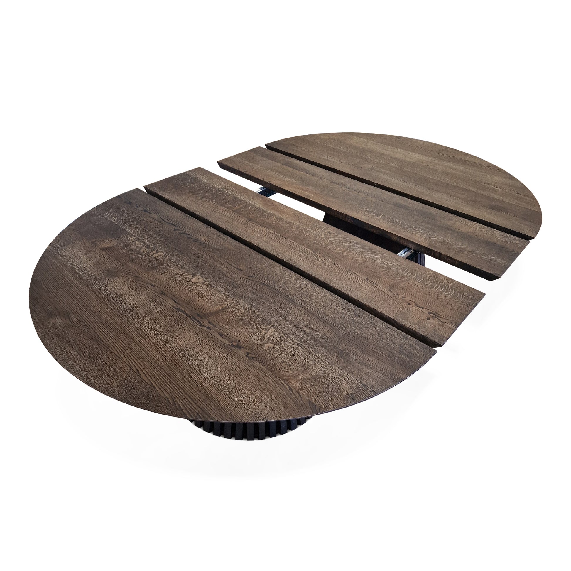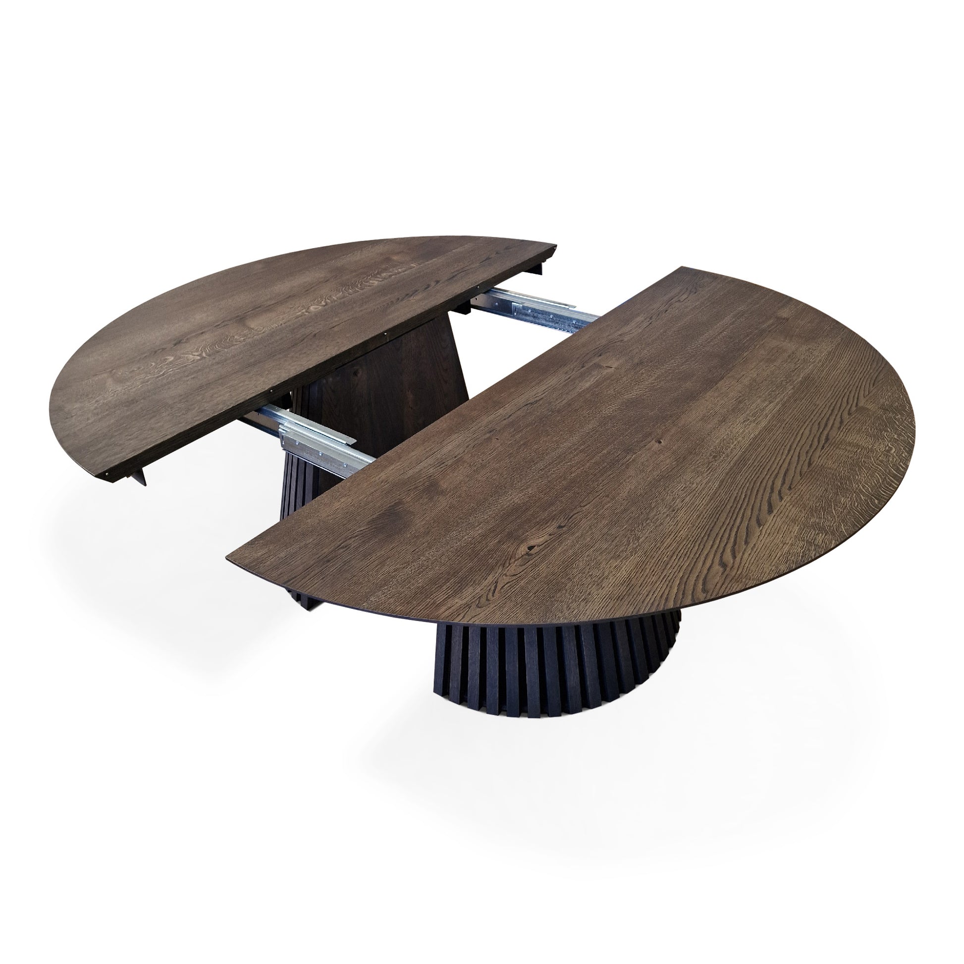 Ready to ship - This elegant round table seats 8 and extends to welcome up to 12 guests with 2*40 cm extension leaves. Handcrafted from solid walnut, it’s the perfect blend of style and functionality. Ideal for everyday dining or hosting.