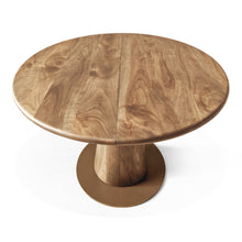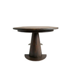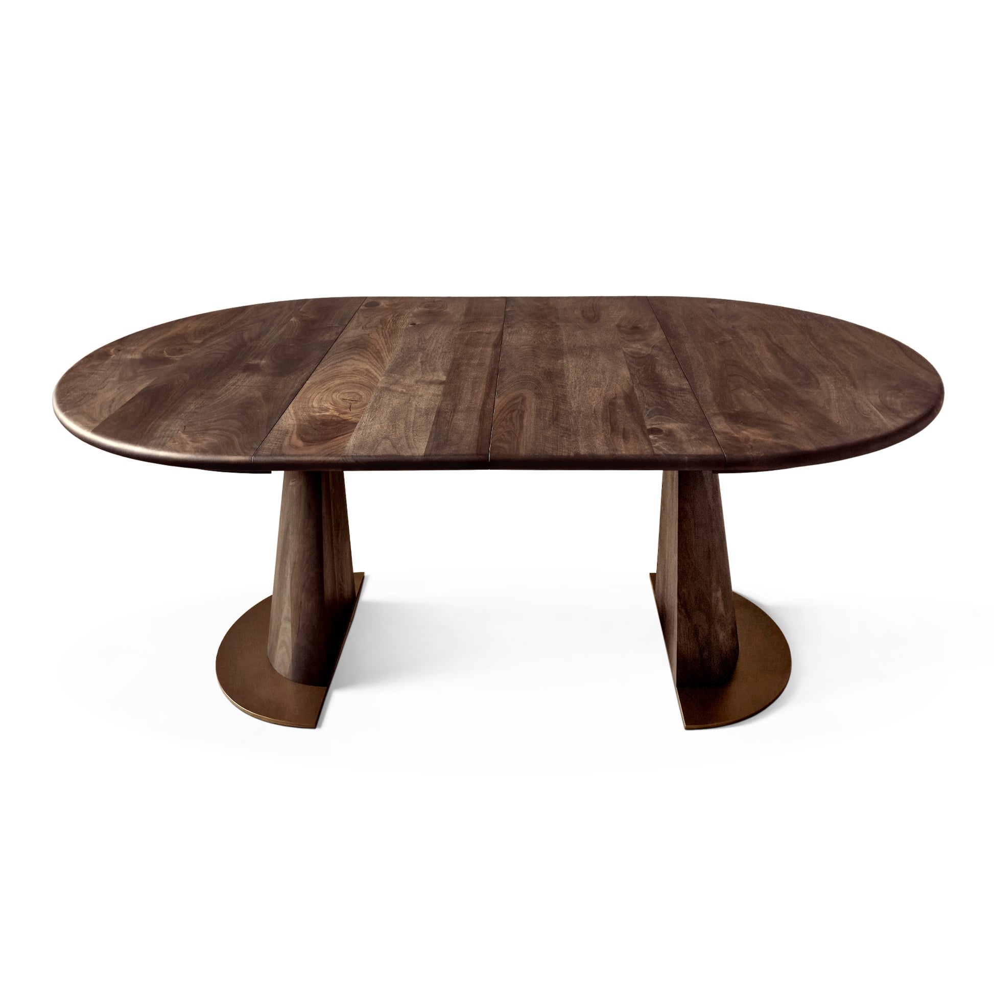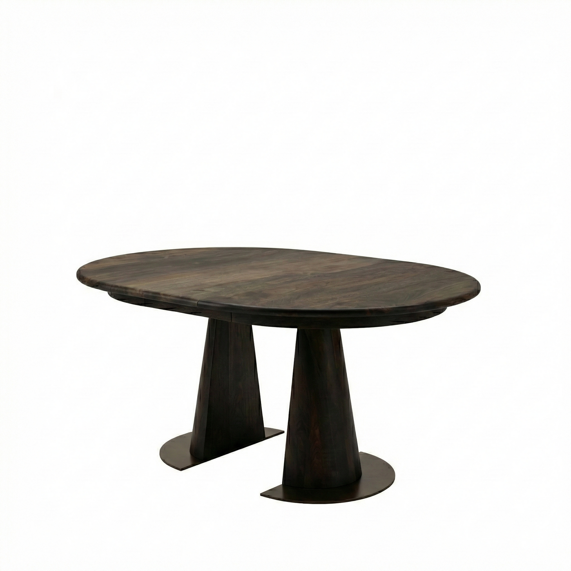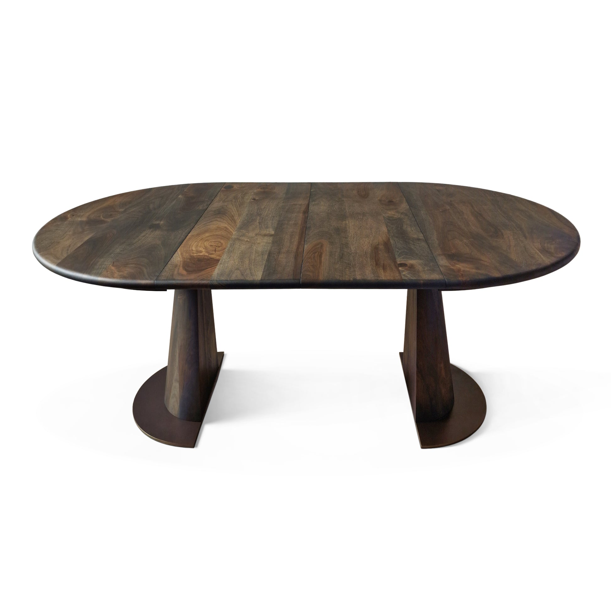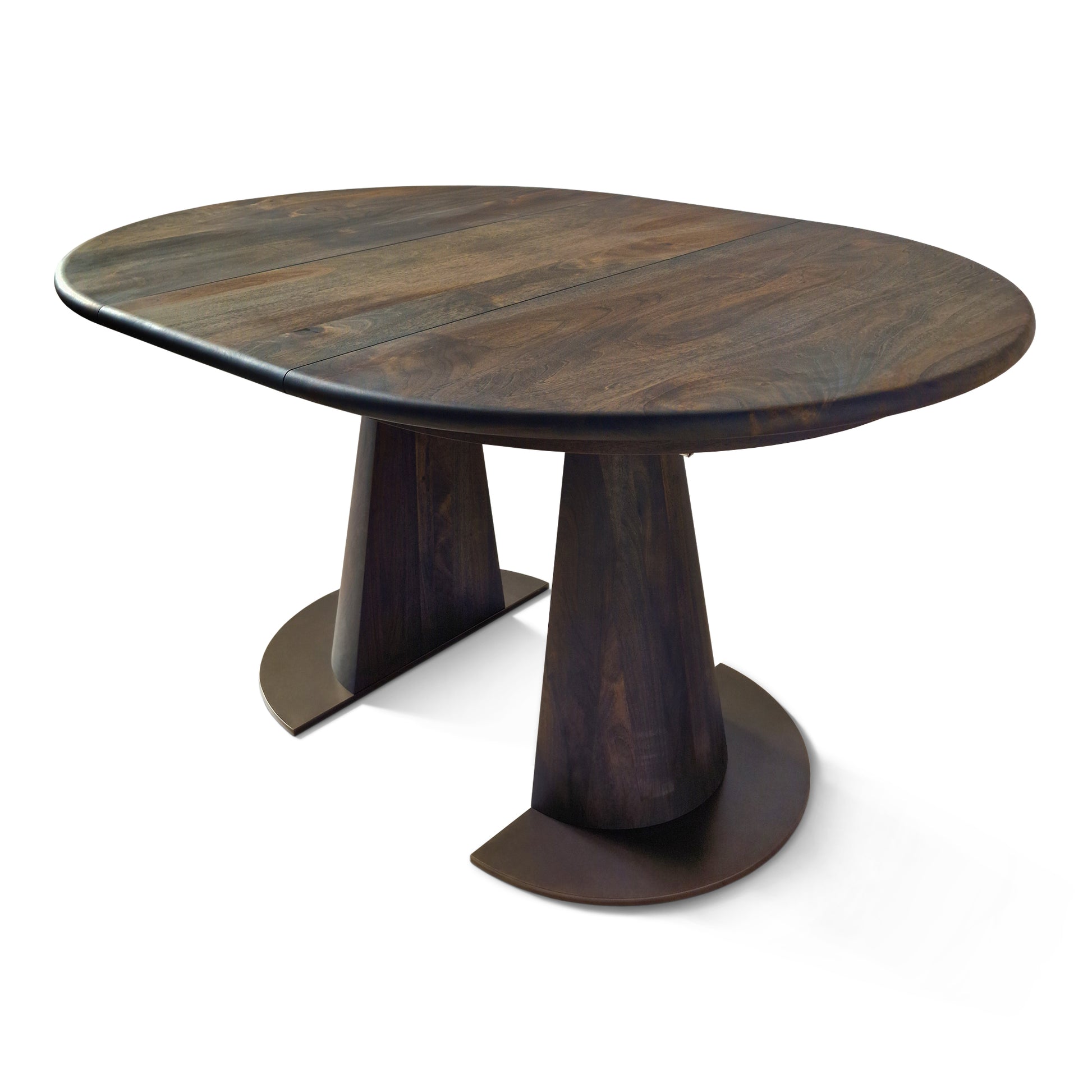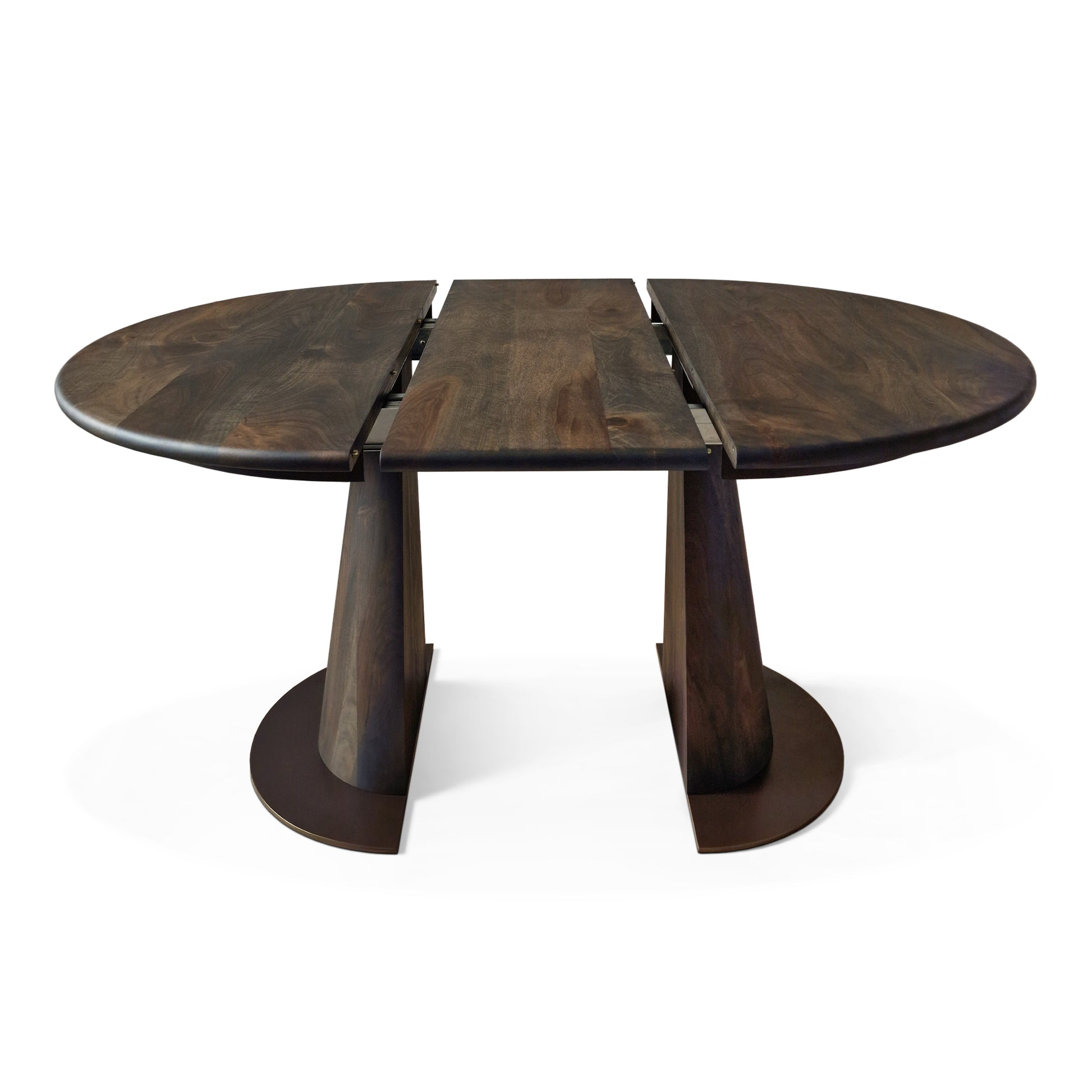 Introducing our handcrafted round dining table in walnut with pipe legs - a stunning addition to any home. Made from solid wood, this table combines elegance and functionality. Its extendable feature and round shape allows you to easily adjust the size to accommodate extra guests, making it perfect for hosting dinner parties and special occasions.