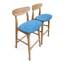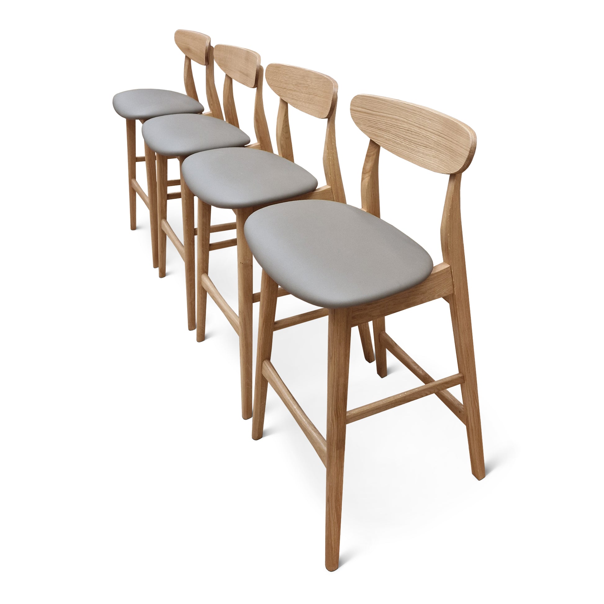Eva Oak Bar Stool made of European oak and Italian leather or fabric . The frame is treated with Rubio Monocoat two-component wood oil to achieve optimal wear resistance and durability. The seat for Eva Oak Bar Stool is made of Italian calf leather or fabric and lined with 30mm foam for optimal sitting comfort.