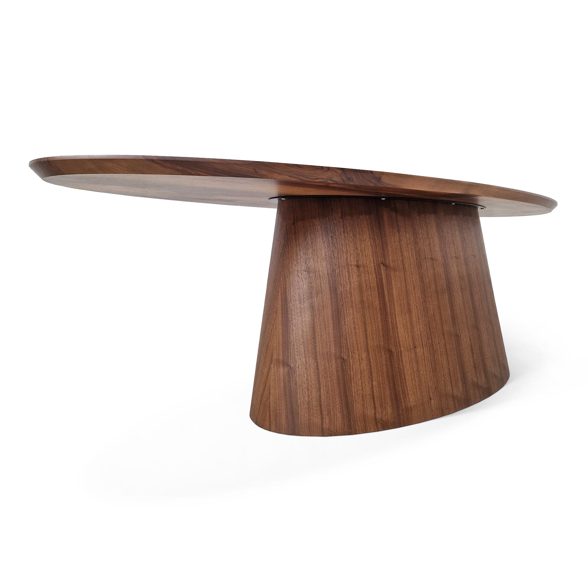 The Tommy Oval Table combines elegant, French-inspired design with practical functionality. Crafted from 4 cm-thick solid walnut, it features an oiled oval tabletop and is available in various sizes. Its solid walnut, conical-shaped base adds a sculptural touch whilst providing excellent legroom and superb stability. Offered in a range of finishes, Tommy is a refined yet versatile dining solution—ideal for everyday family suppers as well as special occasions.