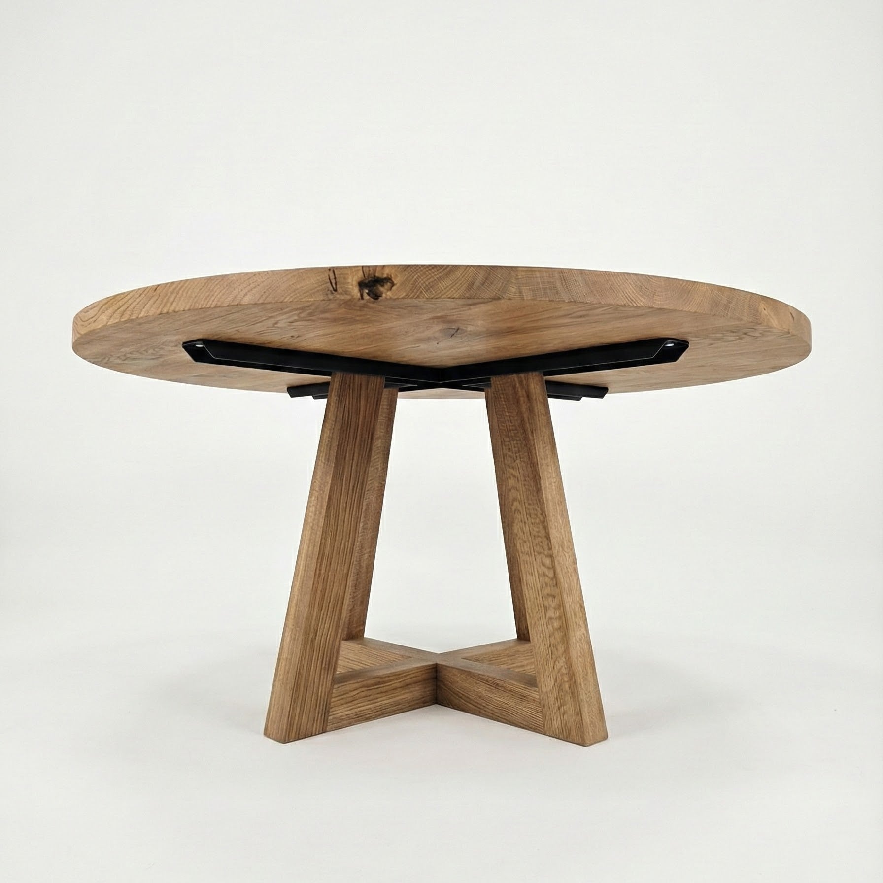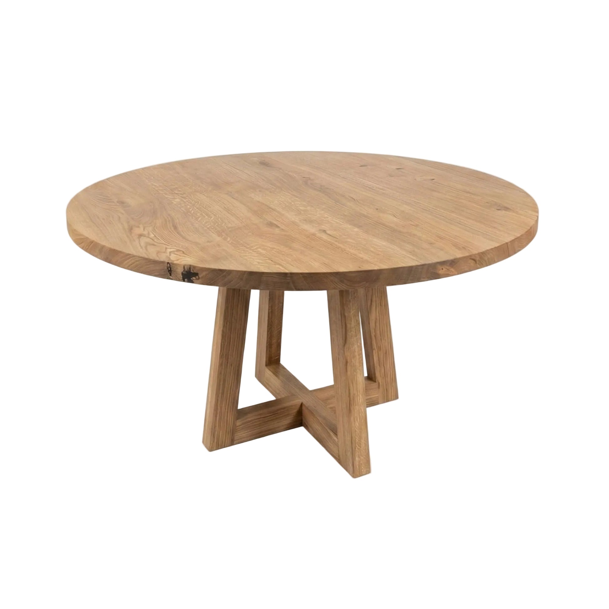 Handcrafted Tulip Round Oak Dining Table – Solid oak elegance meets functionality. In stock (Ø140 cm) with 40 mm thick planks, FSC-certified wood, and natural Rubio Monocoat finish. Perfect for any modern dining space